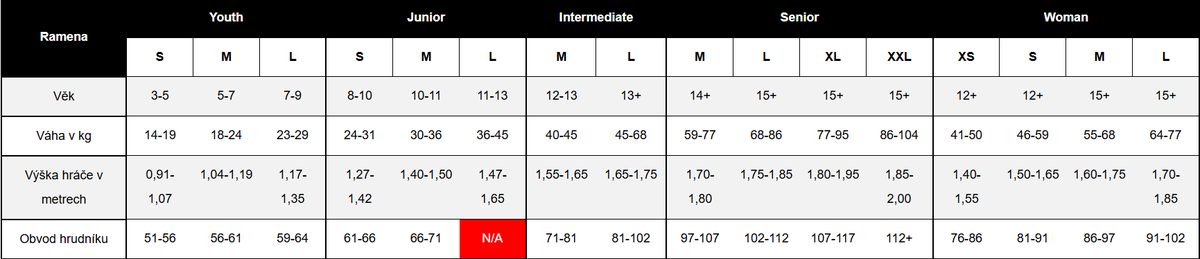 Tyto chrániče ramen patří do velikostní kategorie Youth. Hledáte jinou velikost? Produkt nabízíme také v následujících variantách: