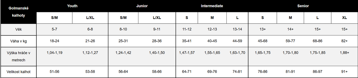 Výběr brankářských kalhot není radno podcenit. Nejen z pohledu velikosti, ale také ochrany a komfortu. Pokud hledáte kalhoty pro děti nebo s golmařinou začínáte, tak je nejlepším startem jsou brankářské kalhoty Bauer Prodigy/GSX. Druhým stupněm jsou kalhoty Elite (Senior + Intermediate), které zajišťují vyšší stupeň ochrany a mobility. Pokud už chcete být jako PROfík, jednoznačnou volbou jsou pak kalhoty Pro.